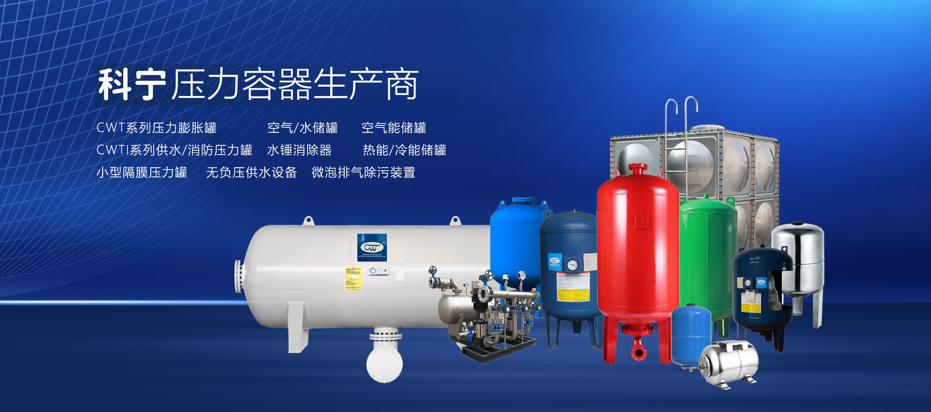 查看詳情 +壽光市科寧壓力容器(壽光)有限公司是專業(yè)從事壓力膨脹罐、空氣/水儲罐、空氣能儲罐、水錘罐、熱能/冷能儲罐、無負壓供水設(shè)備穩(wěn)流罐、耦合罐的研發(fā)、制造、加工、銷售、維修;經(jīng)營國家允許范圍內(nèi)的貨物與技術(shù)的進出口業(yè)務。材質(zhì)有碳鋼、不銹鋼、雙相鋼等。產(chǎn)品主要用于:恒壓變頻供水設(shè)備、無負壓供水設(shè)備、供暖系統(tǒng)、太陽能、地暖、消防、空氣能、空調(diào)、大型供水系統(tǒng)(防水錘)。起到節(jié)能、穩(wěn)壓、防水錘、蓄能、環(huán)保等作用,延長水泵和管道系統(tǒng)的使用壽命,確保供水系統(tǒng)穩(wěn)定運行...